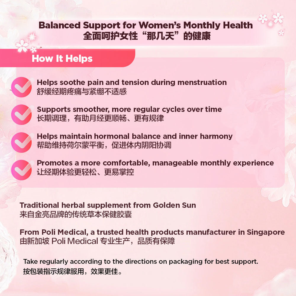 Golden Sun Women’s Menstrual Relief Capsules (36 Capsules)金亮妇事康调经胶囊